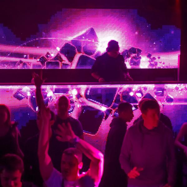В оснащении ночных клубов используются стандартные внутренние экраны в периметрах, холлах, лифтовых зонах, залах, сцене и других помещениях, данные экраны могут быть как из обычных прямых модулей, также из гибких и прозрачных и интерактивных модулях