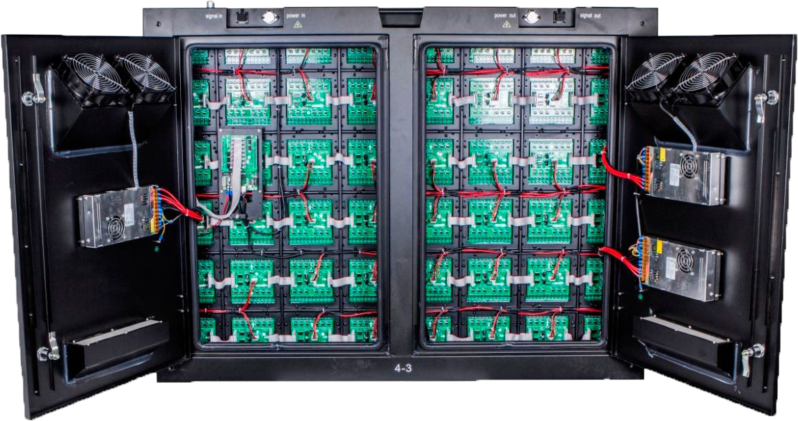 Экран предназначен для фиксированной установки на билборде, а также на фасад или крышу здания на металлическую раму. Железные светодиодные кабинеты монтируются на металлические рамы, поэтому отличаются достаточно высоким весом. Для удобства использования предусмотрено два способа технического обслуживания: фронтальный и тыльный.