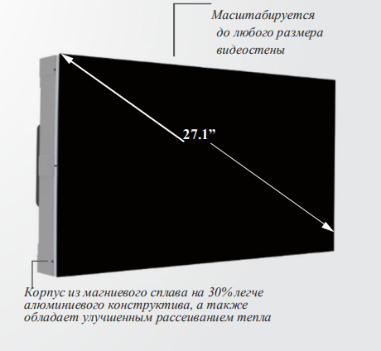 Удобный размер (27’’) и формат экрана кабинета (16:9) позволит реализовать наиболее популярные разрешения - Full HD, 4K, 8K и другие конфигурации;