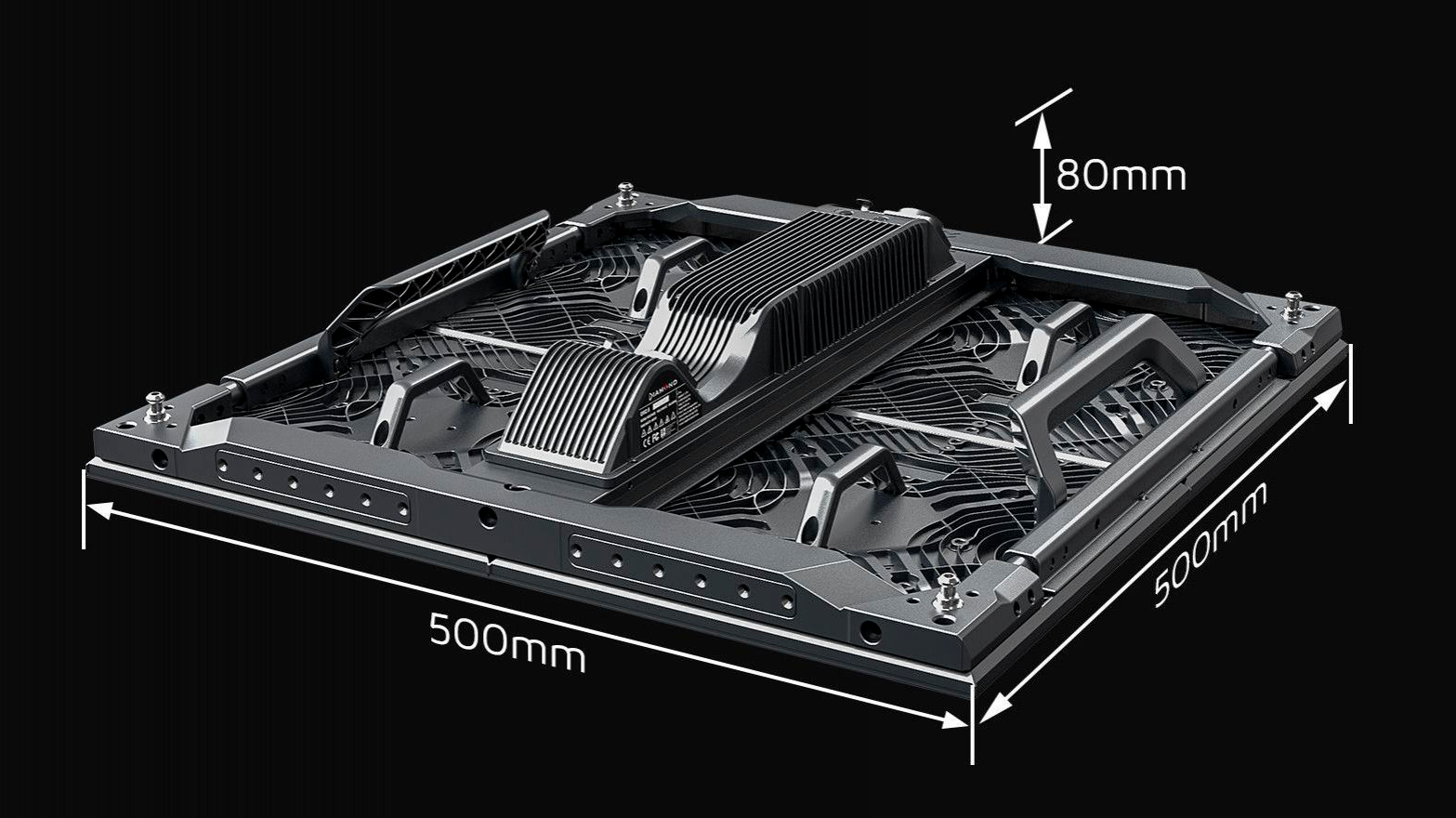 Светодиодные панели Diamond имеют размеры 500 x 500 мм и весят менее 5,5 кг (12 фунтов) на панель. Легкая рама из магниевого сплава обеспечивает хорошую прочность.