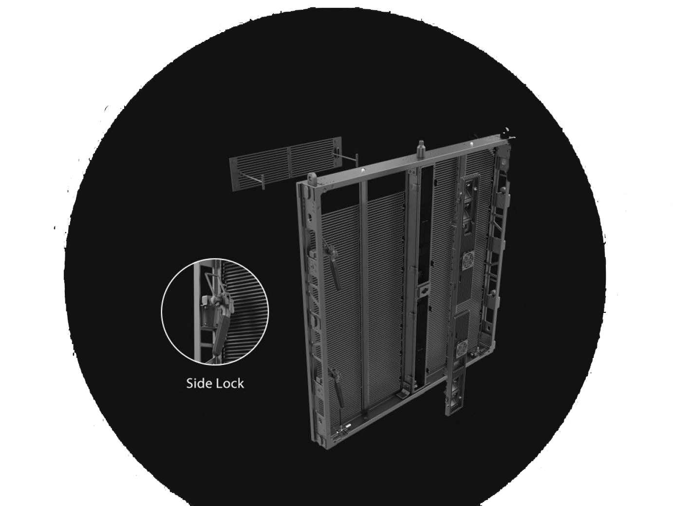 Панели V8T просты в обслуживании благодаря своей модульной конструкции. Модульный блок питания и модуль принимающей карты делают ремонт и замену запасных частей простыми и экономичными. Боковые замки гарантируют прочную и надежную установку панелей и рам.