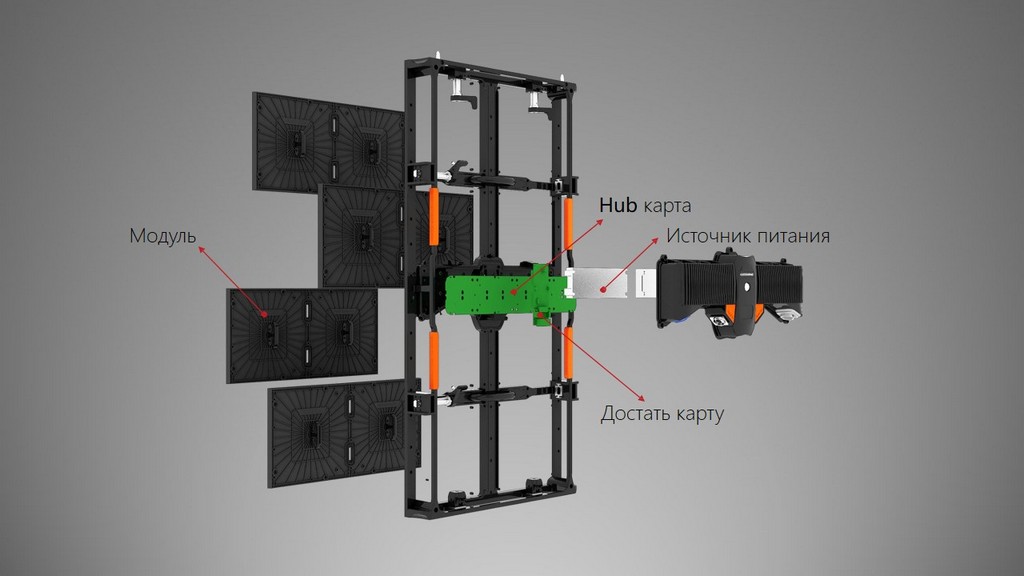 Переднее и заднее обслуживание модуля. Удобный замок пряжка на задней крышке кабинета.